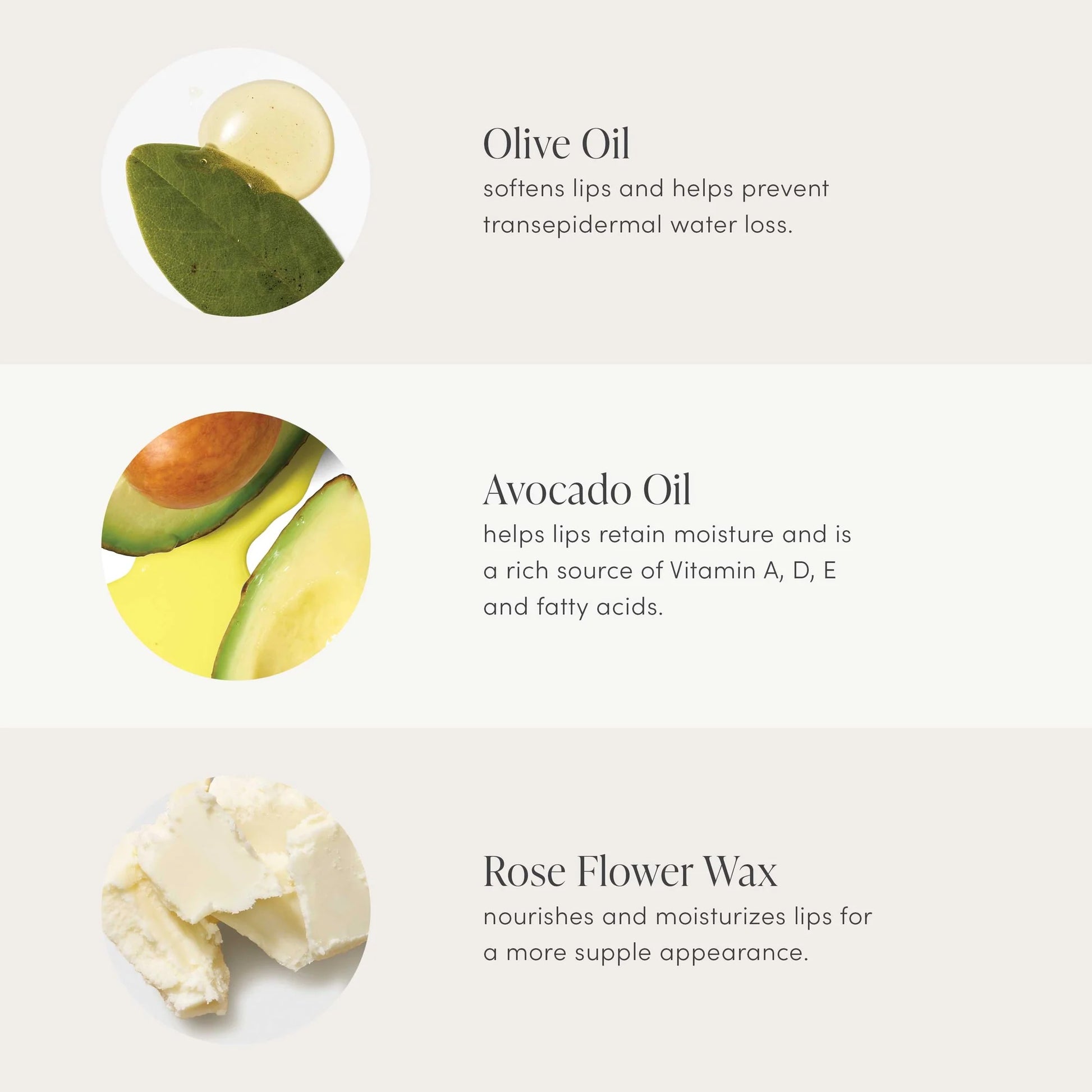 Triisostearyl Citrate, Olea Europaea (Olive) Fruit Oil, Persea Gratissima (Avocado) Oil, Cucurbita Pepo (Pumpkin) Seed Oil, Cera Alba (Beeswax), Simmondsia Chinensis (Jojoba) Seed Oil, Punica Granatum (Pomegranate) Extract, Rubus Fruticosus (Blackberry) Fruit Extract, Vaccinium Angustifolium (Blueberry) Fruit Extract, Vaccinium Macrocarpon (Cranberry) Fruit Extract, Camellia Sinensis (White Tea) Leaf Extract, Carthamus Tinctorius (Safflower) Seed Oil, Rosa Damascena Flower Wax, Tocopherol, Ascorbyl Palmitate, Citric Acid, May Contain: Red 21 (CI 45380)(Aka 223), Orange 5 (CI 45370)(Aka 201)